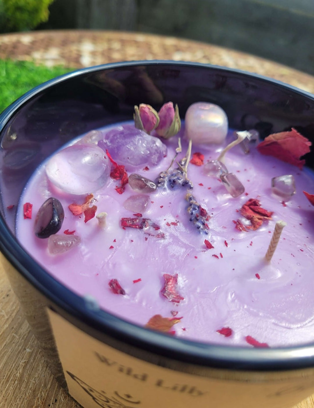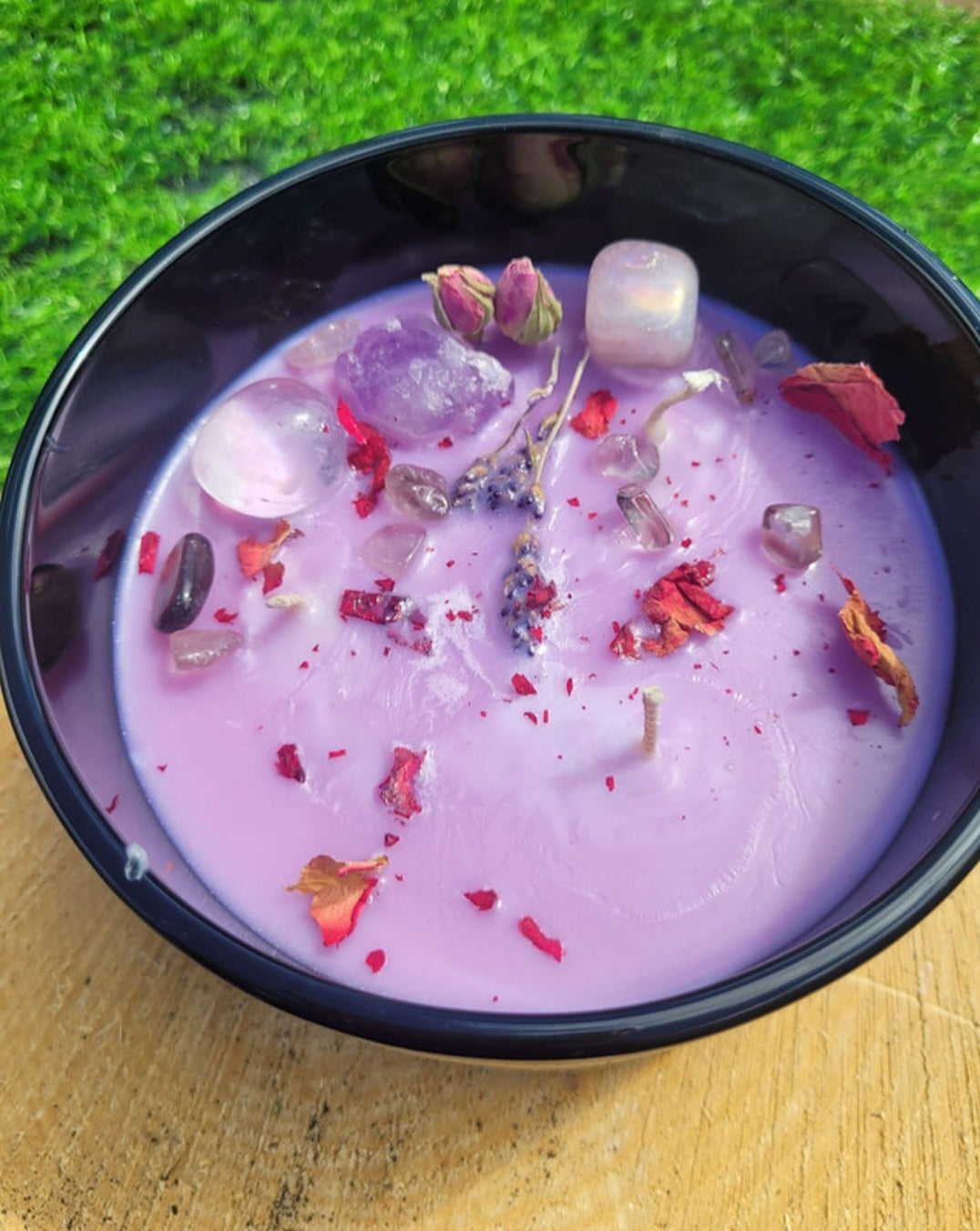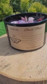 Light and ignite the magic with the Black Magic Candle. With over 50 hours of burn time, this enchanting candle is infused with Amethyst, Clear Quartz, Rose Quartz, and Smoky Quartz. Experience the captivating blend of floral notes, complemented by the rich aroma of black coffee and the sweet warmth of vanilla. Let the Black Magic Candle illuminate your space with its mystical energy and luxurious fragrance.