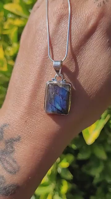 Stunning blue flash labradorite necklace on a 925 sterling silver 18inch snake chain.
