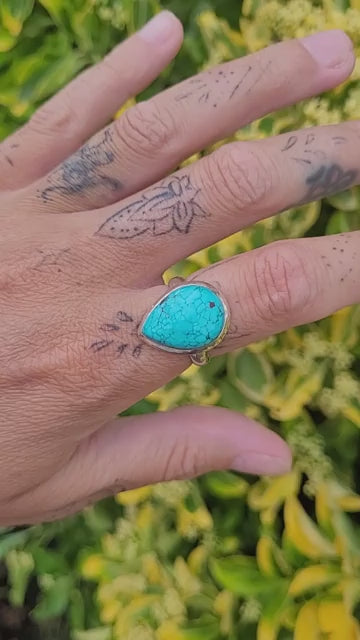 Add a touch of Southwest elegance to your jewelry collection with this stunning teardrop-shaped turquoise ring crafted in solid 925 sterling silver. The smooth, bezel-set turquoise stone takes center stage in a delicate teardrop silhouette—simple yet striking.
